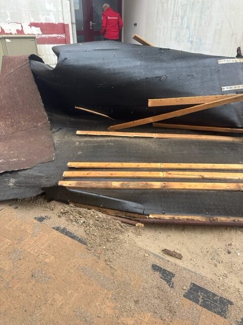 Hierbij is helaas de dak bedekking van ons dagverblijf  er afgewaaid.